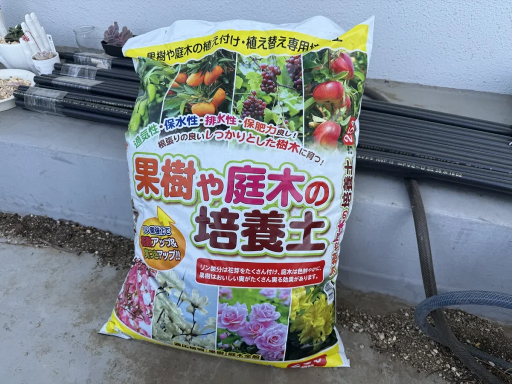めちゃくちゃ優れているとかは特にないのですが、よく使っている「果樹や庭木の培養土」は初期肥料が入っていて無難な上、近くのホームセンターで25l入りで698円ほどで買えるので、わりかし重宝してます。