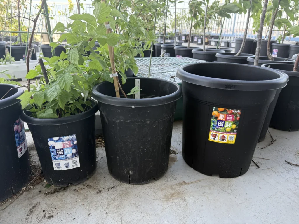 植え替え時に下から突けば外しやすく、サイズ展開も365型、310型、245型の大中小の3サイズ展開しているので、成長が早い果樹に関しては年1回、成長が遅い果樹に関しては2~3年に1回の頻度で植え替えをしています。